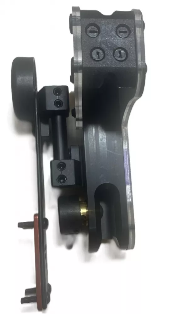 Dabei ist die vordere Halterung kurz ausgeführt, damit wird die Waffe schnell freigegeben und kann ins Ziel geschwenkt werden ohne übertrieben hoch aus dem Holster gezogen werden.