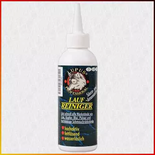 Den Reiniger in den Lauf sprühen, ca. 3 - 5 Min. (Nicht länger als 10 Min) einwirken lassen. Danach mit einer Bürste die Rückstände entfernen und den Lauf mehrmals mit einem Werg durchziehen. Eine vorhandene, durch LUPUS Produkte erzeugte Teflonversiegelung wird durch LUPUS Laufreiniger nicht gelöst.