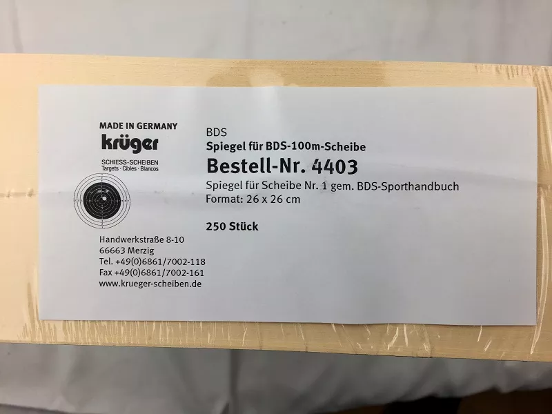 Spiegel für Scheibe Nr. 1 gem. BDS-Sporthandbuch 26cmx26cm, Packung mit 250 Stk.